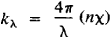 where λ is the wavelength of the light in a vacuum but not in the medium. If (nχ) is equal to 1, then in a layer of the medium of thickness λ the light intensity is decreased to 1/e4π—that is, to approximately 1/100,000—of its initial value. Very strong light absorption is characteristic of metals, at least in the visible and infrared regions of the spectrum. Accordingly, at M. Planck’s suggestion, the light absorption by media with (nχ) ≥ 1 might be called metallic absorption of light.
