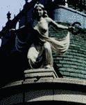 An elevated pedestal bearing a statue that is raised above the substructure.