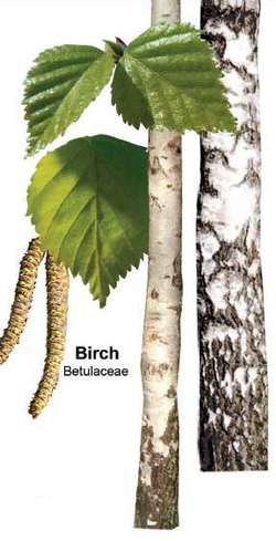 Trees have paper-like bark. Snapped twigs have wintergreen aroma. Bark and twig tea used for lung problems, sore muscles, joint pain, skin fungus, cracked heels, bladder and urinary issues, stomach aches, laxative, diuretic, colds, fever, rheumatism, diarrhea, tumors, cancer, anti-viral, anti-inflammatory, skin cancer. Birch tea has been historically used in enemas. Worm-like flowers (catkins) also edible.