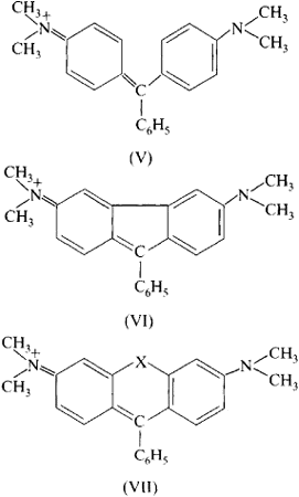 A marked change in the absorption maximum is observed during the formation of the ring system. For example, upon transition from (V) to (VI), λ.max varies from 616 to 955 nm. The absorption maximum for type (VII) compounds also depends on the nature of the substituent X. For example, at