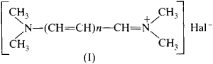 The molecules of compounds in which the conjugation chain ends with electron-donor and electron-acceptor groups have a deeper color. Thus, in the series of substances of type (I), λmax varies from 312 nm(n = 1) to 519 nm (n = 3).