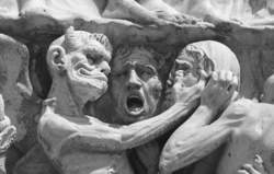 The word demon is from the Greek daimon, meaning a spirit or divine power that may be either good or bad. The early Church condemned all Pagan spirits as being evil, giving the word demon its present negative connotation. Demonology is the study and classification of demons.