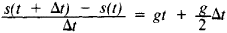 If the time interval Δt tends to zero, then this expression tends to the number gt, which is called the velocity of the motion at the time t. Thus, the velocity of motion at any moment of time is defined as the limit of the average velocity as the time interval tends to zero.
