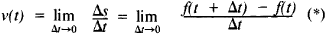 In general, these calculations must be made for any moment of time t, for the time interval from t to t + Δt, and for the law of motion given by the formula s = f(t). Then the average velocity of motion over the interval of time from t to t + Δt is given by the formula Δs/Δt, where Δs =f(t + Δt) - f(t), and the velocity of motion at time t is equal to