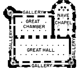 6. A long, narrow room for special activities like target practice, etc.