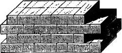 In ancient Roman masonry and Greek, an extremely regular masonry pattern in which stones of uniform length and uniform height are set so that each vertical joint is centered over the block beneath. Horizontal joints are continuous, and the vertical joints form discontinuous straight lines;