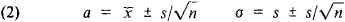 where the sign ~ denotes approximate equality for large n. In this manner, having agreed to append to the estimates their variance with the sign ±, we have for large n under the assumption of a normal distribution (1)