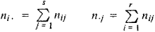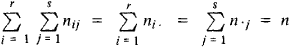 In the study of the joint distribution of two attributes, tables with two entries are used. Table 2a serves as an example of a joint distribution of two qualitative attributes. In the general case, when the set is divided into classes A1, A 2, . . . , A r according to attribute A and into classes B 1 B2, • . ., B 5 according to at-tribute B, the table consists of the numbers nij of objects simultaneously belonging to classes Ai and Bj. Summing them according to the formulas