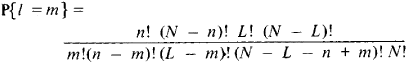 The following may serve as an example of the application of the sampling method. In a batch of N articles, let L be the number of defective ones; n < N objects are randomly selected (for example, n = 100 for N = 10,000) from the batch. The probability that the number l of defective articles in the sample is equal to m is