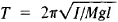 If the amplitude of motion is small, the motion is simple harmonic. The period T, time for a complete vibration (for example, from the extreme displacement right to the next extreme displacement right), is given by Eq. (1). See Harmonic motion (1)