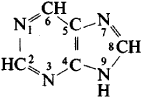 Both in the free state and as constituents of more complex compounds, purines play a key role in the life processes of all organisms. For example, the composition of nucleic acids includes the purine compounds adenine (6-aminopurine) and guanine (2-amino-6-oxypurine) and in some cases includes smaller quantities of methylated adenines, such as 6-methylamino-purine. In ribonucleic acids (RNA), the purine compounds are combined with ribose by a glycoside bond, and in deoxyribonucleic acids (DNA), with deoxyribose by a bond to the nitrogen atom in the 9 position of purine. The content of purines in DNA is equal to that of the pyrimidine bases, while in RNA the amount of purines is usually higher than that of the pyrimi-dines. In nucleic acids, both the purine and pyrimidine compounds effect the coding of hereditary information and its replication during protein biosynthesis.