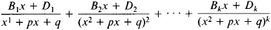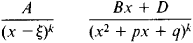 where the trinomial x2 + px + q has conjugate complex zeros (4 q > p2). The method of undetermined coefficients may be used to determine the coefficients Aj(i) Bj, and Dj.