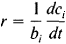 where ci is the concentration of the reaction product, that is, the number of moles of product per unit volume, bi is the stoichiometric coefficient of this substance, and t is the time. This equation is also applicable to the reactant if the stoichiometric coefficients of the reactants are considered negative.