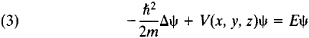 where E is the total energy of the quantum system and ψ (x, y, z) satisfies the stationary Schrödinger equation: