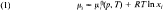 is the chemical potential of the pure component, which is dependent only on the pressure P and the temperature T, and where R is the gas constant.
