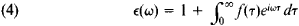 The limits of integration τ ≥ 0 follow from the causality condition. Equation (4), which is defined for real values of ω, can be extended into the domain of complex values of the variable ω. If we set ω = ω′ + iω″, where ω′ and ω″ are real numbers determining, respectively, the real and imaginary parts of ω, then the factor e-ω″τ appears in the integral of equation (4); this factor ensures convergence of the integral when ω″ > 0 and e-ω″τ < 1. It thus follows from the causality principle that the function ∊(ω) is analytic in the upper half plane of the complex variable ω (ω″ > 0). This transition to the nonphysical domain of complex values of ω has profound significance, since the Cauchy theorem, which permits the value of a function for any value of the variable to be expressed in terms of the Cauchy integral of the function, is valid for analytic functions. By selecting a real value of the variable, it is possible to obtain equations for the physical quantities actually measured. The dispersion relations were obtained in this manner. They permit, for example, the real part (Re) of the dielectric constant to be expressed in terms of an integral of its imaginary part (Im):