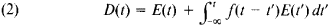 In this expression, f(t – t′) is a function determined by the internal structure of the dielectric. It is not necessary to know the specific form of this function to make further conclusions. What is important is that the function f(t - t′) depends only on the time difference (t - t′). This fact follows from translational invariance with respect to time—that is, from the independence of the selection of the origin of the time axis. In accordance with the causality principle, integration with respect to t′ is carried out up to the time t.