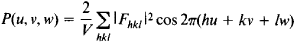 If u, v, and w are the coordinates of points in the space of the interatomic vectors, the Patterson function P(u, v, w) can be expressed as follows: