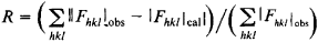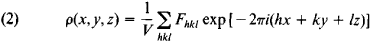 where V is the volume of the unit cell; the Fhkl are Fourier coefficients, which in X-ray diffraction analysis are called structure factors; and . Each structure factor is characterized by the three integers hkl and is related to the diffraction reflection determined by conditions (1). The purpose of the summation in equation (2) is to collect mathematically the X-ray diffraction reflections in order to obtain an image of the atomic structure. Image synthesis in X-ray diffraction analysis must be carried out in this manner because of the absence of natural lenses for X-radiation; a converging lens is used for this purpose in visible-light optics.