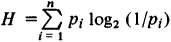 (where log2a denotes the logarithm of the quantity a to base 2) and may not exceed it by more than one unit. The quantity H (the entropy of the set of messages) possesses simple formal properties, and for all conclusions of information theory that are of an asymptotic character, corresponding to the case H′→ ∞, the difference between H and H′ is absolutely immaterial. Accordingly, the entropy is taken as the measure of the uncertainty of the messages from a given source. In the example above, the entropy is equal to