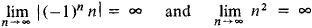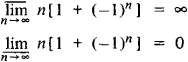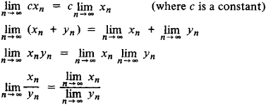It is obvious, of course, that sequences that converge to infinity or minus infinity are not convergent in the sense of the definition of convergence given earlier. In general, properties of finite limits do not carry over to infinite limits. For example, the sequences xn= n and yn = sin (nπ/2) — n converge to infinity and minus infinity, respectively, but the sequence xn + yn, n = 1, 2, …, is bounded and divergent.