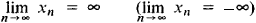 If xn, n = 1, 2, …, is a sequence such that for any number ∊ > 0 there exists a number n∊ with the property that xn > ∊ (xn < —∊) for all n ≥ n∊, then we say that the sequence converges to infinity (minus infinity) and write