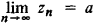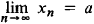 Limit of a sequence. Let there be given a sequence of real numbers xn, n = 1, 2, …. The number a is called the limit of this sequence if for any number ∊ > 0 there exists a number n∊ such that for all numbers n ≥ n∊, the inequality ǀxn — aǀ < ∊ is satisfied. In this case, one writes