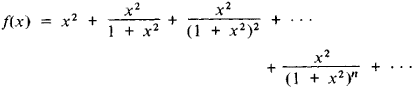 which is the sum of an infinite geometric progression with ratio q = 1/(1 + x2), 0 < q < 1, has limit 1 at x = 0 (since f(x) = 1 + x2 for x ≠ 0), and this limit does not coincide with the value f(0) = 0 of f at zero. On the other hand, the function