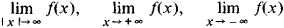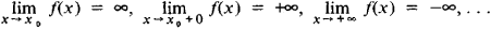 In these cases, the function f is said to converge to infinity (or minus infinity) as x → x0, x → x0 + 0, or x → + ∞, respectively. For example,
