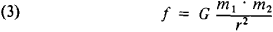 where r is the distance between the bodies, G is the universal constant of gravitation, and m1 and m2 are the masses of the attracting bodies. A formula for the weight P of a body of mass m in the earth’s gravitational field may be easily obtained from formula (3):