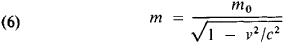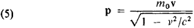 For low velocities (v « c) this equation becomes the Newtonian relation p = mv. Therefore, the quantity mo is called the rest mass, and the mass m of a moving particle is defined as the proportionality factor between p and v, which is dependent on the velocity: