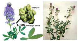 Wow. Where do I start. Alfalfa is a purplish-flowered clover with roots that go very deep -over 100 feetreaches nutrients that other plants can't reach. It's called the land version of sea kelp because of high mineral content for strong bones, hormones and immune system. It alkalizes blood. It's a complete B complex, C, D, E, K, octacosanol, calcium, chromium, iron, manganese, magnesium, selenium, silicon, sodium, sulfur, trace minerals, zinc, coumarins, 8 digestive enzymes, all 18 essential amino acids (making it a major source of protein), fatty acids, and saponins. Alfalfa is the richest source of phytoestrogens. It stimulates and nourishes the pituitary gland, protects from radiation poisoning, neutralizes acids & poisons in the body, treats arthritis, cancer, ulcers, strengthens all tissues, bones, rebuilds teeth, stimulates digestion and bowel action, rheumatoid arthritis, balances blood sugar, diabetes, preventing absorption of cholesterol, energy, indigestion, dyspepsia, anemia, loss of appetite, poor assimilation and cleanses the colon. Whew. Dry it, grind into powder, make tea, juice or put into smoothies. Helps weight gain, stops bleeding. Anti-fungal. High source of chlorophyll. Rejuvenates the whole system. Don’t eat too much at once or take if you have lupus.