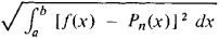 and the minimum of the deviations for all polynomials Pn(x) that is, for all sets of coefficients a1, a2,. . ., an—is called the best approximation of the function f(x) by means of the system Φ1(x), Φ2 (x),..., Φn(x). Denoted by En(f,Φ), the best approximation is the minimum of the maxima, or the minimax. A polynomial P*n(x, f) whose deviation from f(x) is equal to the best approximation (such a polynomial always exists) is said to be the polynomial that deviates least from the function f(x) on the interval [a, b].