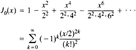 is called a cylindrical function of order v of the first kind. Here, Γ(z) is the gamma function; the series on the right-hand side of the equation converges for all values of x. In particular, the zeroth-order cylindrical function has the form