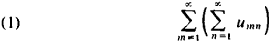 composed of the sums Sm , If the repeated series (1) is convergent and has theis convergent and has the sum S, then it is called the row sum of the double series. The column sum S’ of the double series is defined in an analogous manner. The convergence of the double series does not imply the convergence of the series