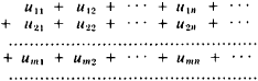 composed of the elements of an infinite matrix ǀǀumn ǀǀ (m, n = 1,2,...). These elements may be numbers (then the double series is called a double series of numbers) or functions of one or several variables (double series of functions). An abbreviated notation is used for the double series: