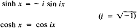 Hyperbolic functions may be expressed in terms of trigonometric functions: