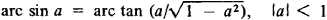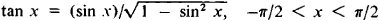 As an example, according to these definitions, x = Arc sin a is any solution of the equation sin x = a; that is, sin Arc sin a = a. The functions Arc sin x and Arc cos x are defined in the real domain for ǀxǀ ≤ 1, the functions Arc tan x and Arc cot x are defined for all real x, and the functions Arc sec x and Arc csc x are defined for ǀxǀ ≥ 1. The last two functions are rarely used.