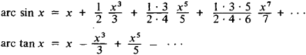 Since trigonometric functions are periodic, their inverse functions are multiple-valued. Certain single-valued branches (the principal branches) of these functions are designated as arc sin x, arc cos x, …, arc csc x. Specifically, arc sin x: is the branch of the function Arc sin x for which –π/2 ≤ arc sin x ≤ π/2. Similarly, the functions arc cos x, arc tan x, and arc cot x are determined, respectively, from the conditions 0 < arc cos x ≤ π, –π/2 < arc tan x < π/2, and 0 < arc cot x < π. The inverse trigonometric functions Arc sin x, … can easily be expressed in terms of arc sin x, …; for example,