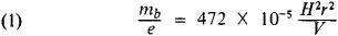 where mb, is the mass of the ion (in atomic mass units), e is the charge of the ion (in units of elementary electric charge), r is the radius of the central trajectory of the ions (in cm), H is the magnetic field intensity (in oersteds), and Fis the applied potential difference (in volts) by means of which the ions are accelerated in the ion source (the accelerating potential).