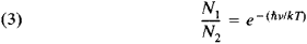 The distribution of electrons between two energy levels is described by Boltzmann’s equation