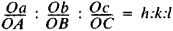 where OA, OB, and OC are the intercepts formed by face ABC along the coordinate axes (the edges of the crystal) and h, k, and l are three small whole numbers. In crystallography it is accepted practice to describe the edges of a crystal in terms of these numbers (symbols).