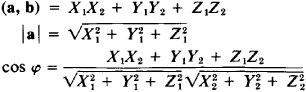 The development and application of vector algebra is closely connected with various types of products of vectors: scalar, vector, and mixed. The concept of the scalar product of vectors arises, for example, in examining the work performed by a force F along a given path S: the work is equal to |F| |S| cos φ, where φ is the angle between vectors F and S. Mathematically, the scalar product of vectors a and b is defined as the number denoted by (a, b) and equal to the product of the magnitudes of these vectors and of the cosine of the angle between them: