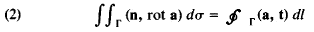 Equation (2) expresses the following physical fact: the intensity of the curl of a vector field a through the surface г is equal to the circulation of this field along the curve y . Ostrogradskii’s formula is the source of the invariant (independent of the coordinate system) definition of the fundamental operations of vector analysis. For example, from this formula, it follows that