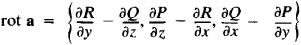 The curl (or rot) of vector field a(M) is a vector characterizing the “rotational component” of this field. The curl of field a is denoted by rot a or curl a . If P, Q, R are the coordinates of a in the basis i, j, k, then