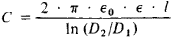 where l is the length of the cylinder in mm, D2 is the inside diameter of the outer cylinder in mm, and D1 is the outside diameter of the inner cylinder in mm. No allowance is made for distortions of the homogeneity of the electric field at the edges of the electrode plates (the edge effect); therefore, these calculations yield values for C that are somewhat low. The accuracy of calculation increases with a decrease in the ratio b/S (for a flat capacitor) or (D2 – D1)/l (for a cylindrical capacitor).