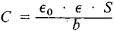 where ∈0 is the dielectric constant of a vacuum (∈0 = 8.85 X 10-3 pF/mm), ∈ is the relative dielectric constant of the dielectric (∈ ≥ 1), S is the area of a flat electrode plate in sq mm, and b is the distance between the electrode plates in mm.