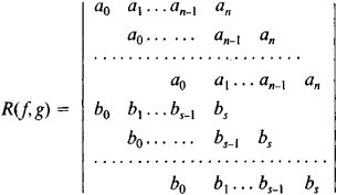where the empty positions are occupied by zeros. The determinant has i rows containing the coefficients a0, a1, …,an and n rows containing the coefficients b0, b1,…. b3, If a0 ≠ 0 and b0 ≠ 0, then