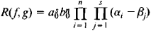 where α1, α2, …, αn are the roots of the equation f(x) = 0 and β1, β2, …, βs are the roots of the equation g(x) = 0. The resultant vanishes if, and only if, the two equations have a common root or their leading coefficients are both equal to zero.