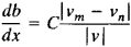 In the initial region of the jet, where x < xn, the boundary layer expands but does not reach the axis of flow. The velocity v is constant near the axis and is equal to the velocity at the nozzle orifice. In the transition region (xn < x ≤ xp), viscous mixing spreads over the entire jet flow and the flow velocity along the axis decreases, but the velocity profiles are not yet stabilized. In the main region (x > xp), the flow velocity along the axis continues decreasing, but the profiles of the relative velocity Δv/Δvm = f(y/b) become constant. In these profiles, Δv = v – vn and Δvm = vm – vn correspond to the excess velocities at a particular point in the flow and along the jet axis. The jet expands in the main region in the same way that the boundary layer expands in the initial region of turbulent flow, that is, in proportion to the average amount of flow turbulence